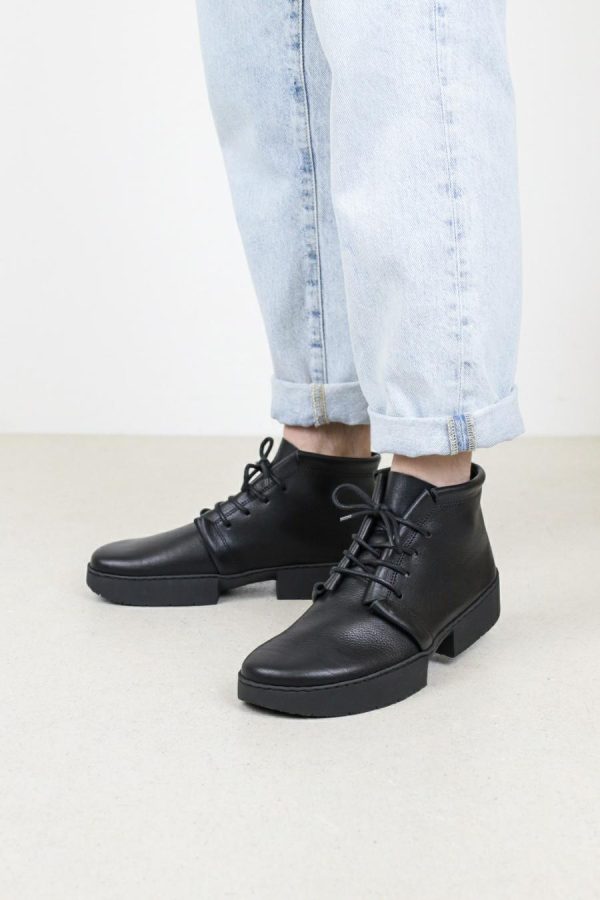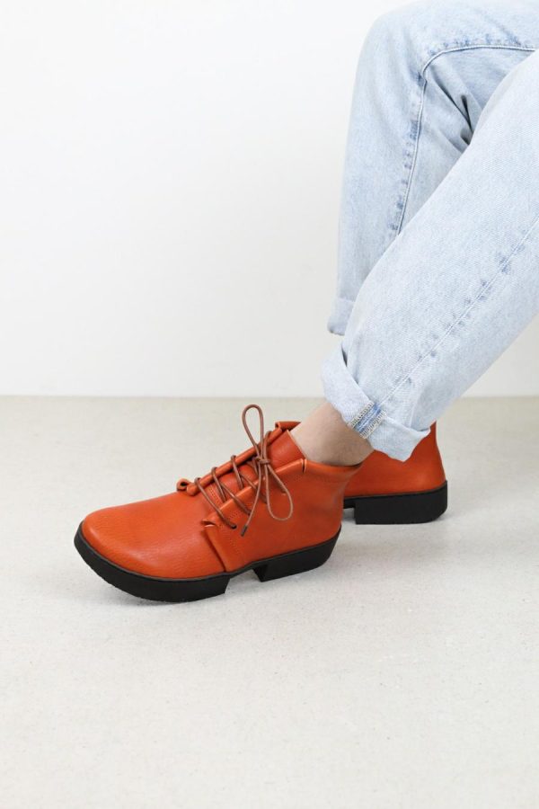 The pleated leather edges create a sense of graphic spaciousness in this otherwise unassuming lace-up shoe.