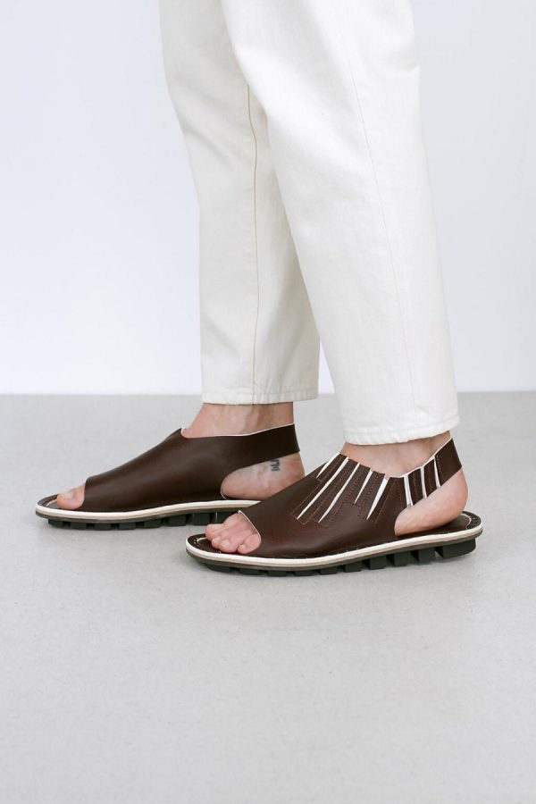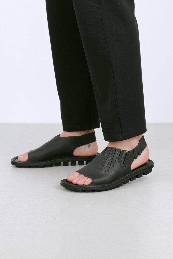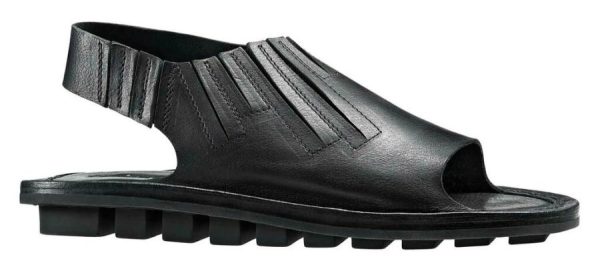 Unisex sandal with a concealed, stitched elasticated strap. This decorative element provides flexible access.