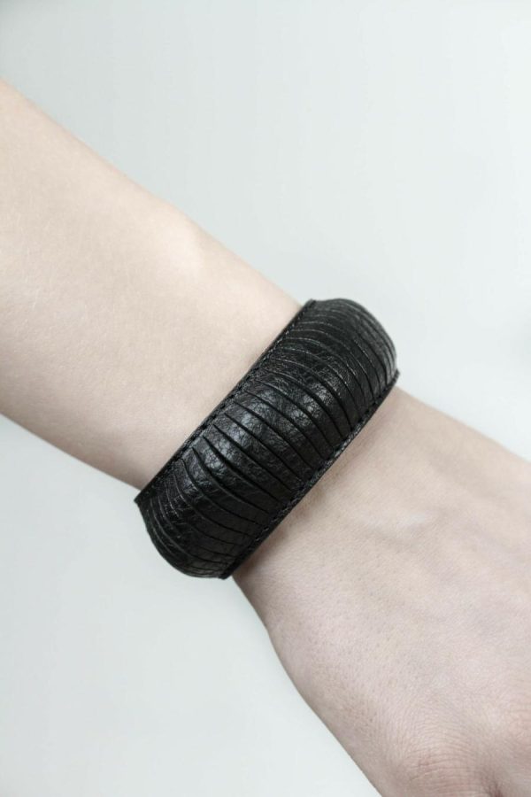 Simple unisex bracelet, slotted and with a push-button closure.