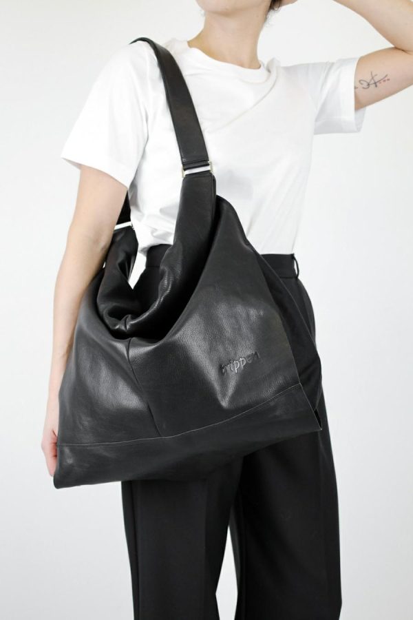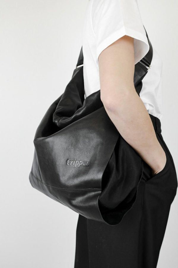 Oblo big is the large shoulder bag version of Oblo small. The outer leather cover reveals the inside pocket made of waterproof woven cotton fabric.