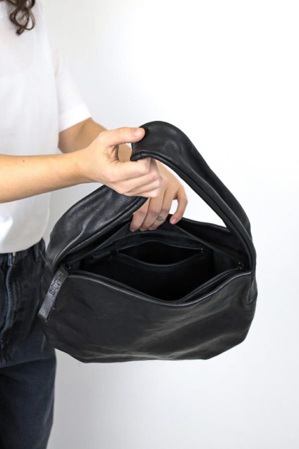 Shoulder bag with subtle details at the corners and the base of the strap, with inner pocket and zip fastening.