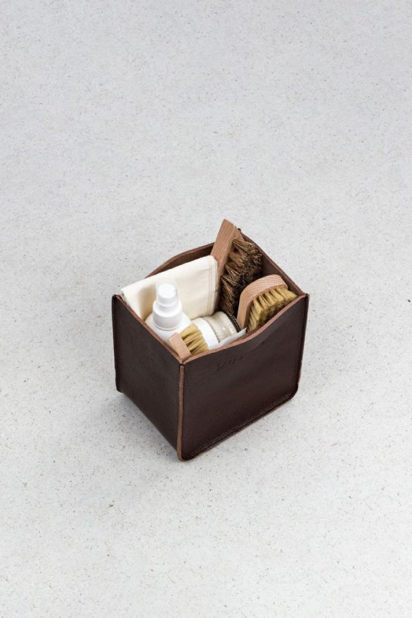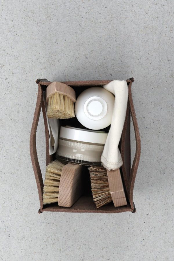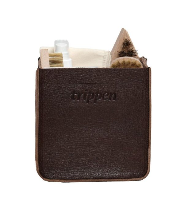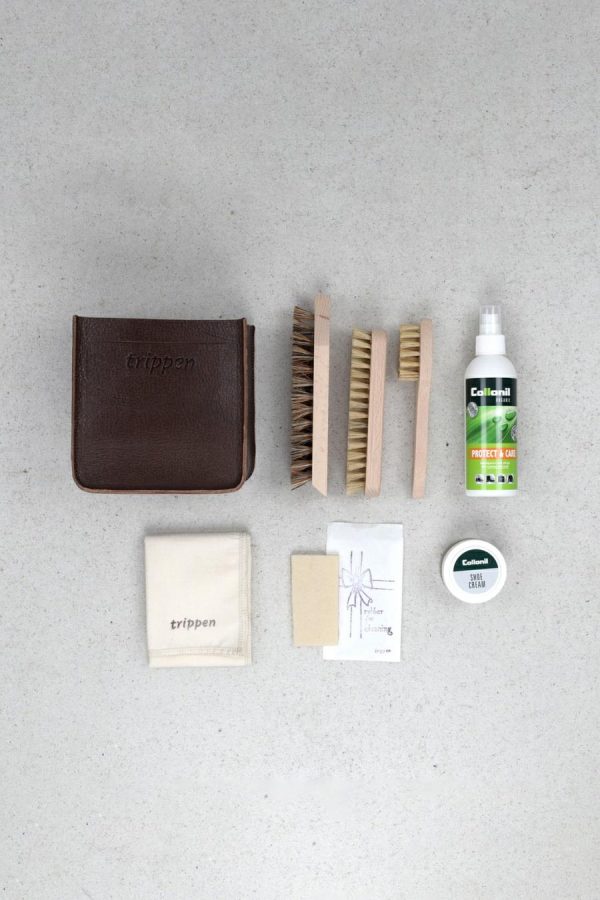 Our hand-sewn shoe care set made of vegetable buffalo leather contains all the utensils you need for cleaning and caring for your Trippen shoes.