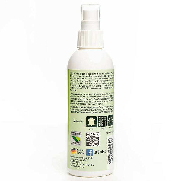 Collonil Bamboo Lotion dissolves dirt and provides all Trippen smooth and suede leathers with valuable moisture. The added natural bamboo extract in turn prevents moisture loss and thus protects the material from drying out. The liquid Bamboo Lotion is produced without propellant gases in the interest of environmental compatibility and is equipped with a pump sprayer.