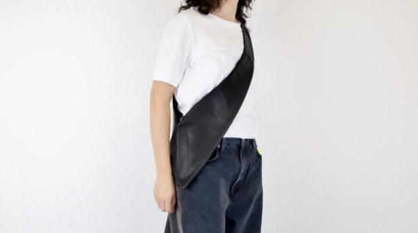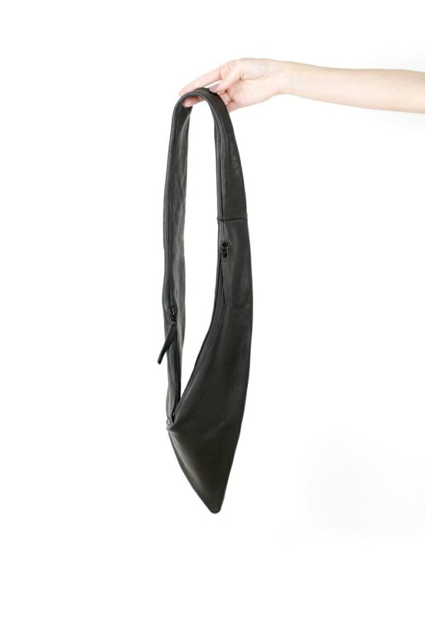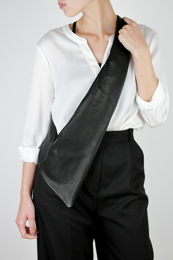 Soft, streamlined shoulder bag whose double pockets hug the body like a garment.