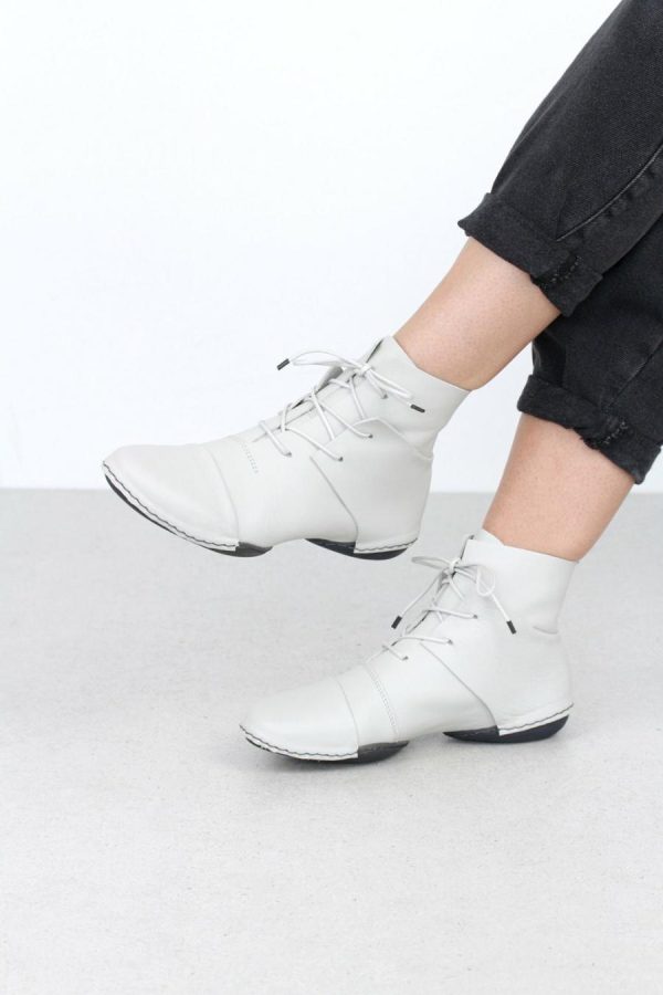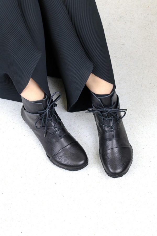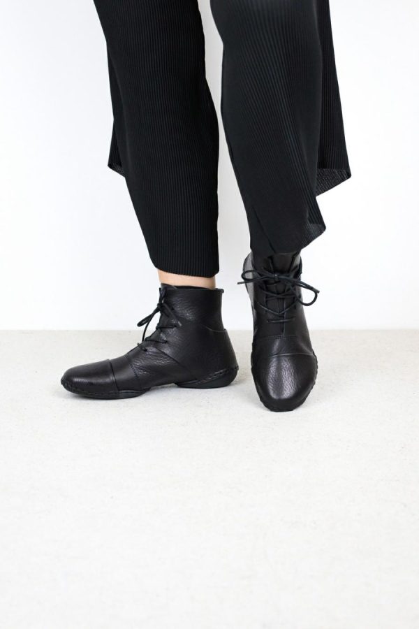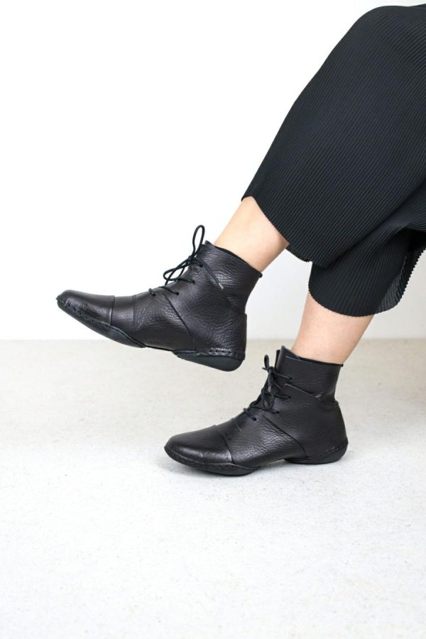Vanguard lace-up ankle boot where toe and heel sections are not tied in, but attached to the sole seam.